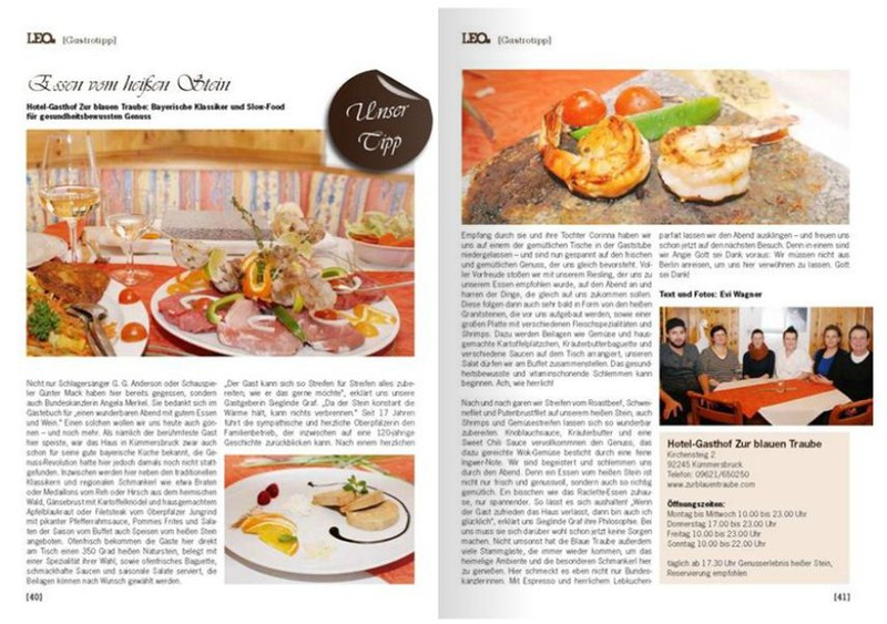 Das LEO&Hugo-Redaktionsteam hat bei uns gespeist und uns im GASTROTIPP der Februar-Ausgabe empfohlen.